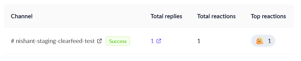 * **Replies:** Number of customer replies to the announcement. Click the link to open the corresponding Slack thread and view the conversation.
