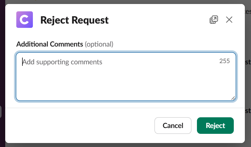 * Approvers receive a Slack message and can approve or reject directly
