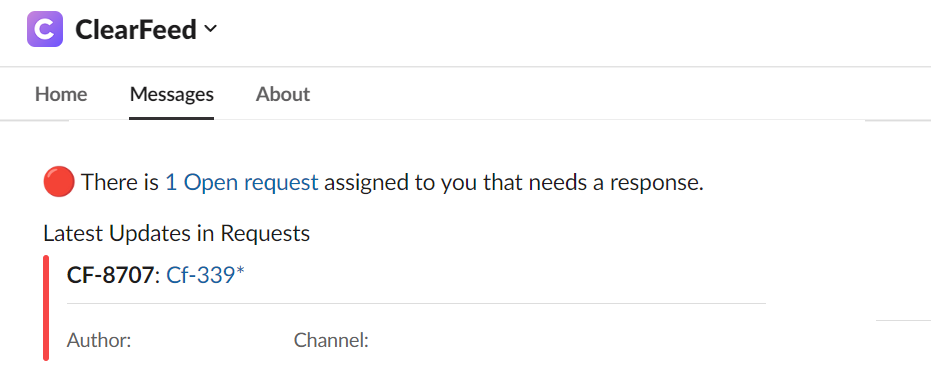 * Clicking on the \[number] Open requests will take you to the ClearFeed web app where these requests will be seen.