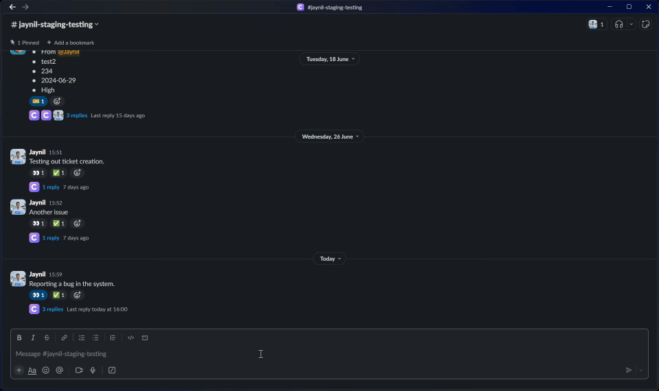 * When ClearFeed applies emoji actions on request or triage channels, in response to actions like Assigning or Resolving requests/tickets - these emoji reactions are applied by the `ClearFeed` bot in Slack (and not as the user who may have performed those actions). The actual actor is still recorded correctly inside ClearFeed (i.e., will be visible in the ClearFeed web app and triage channels as ticket metadata).