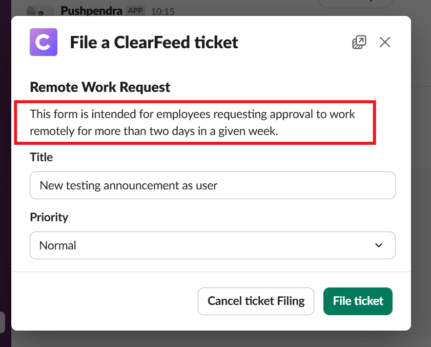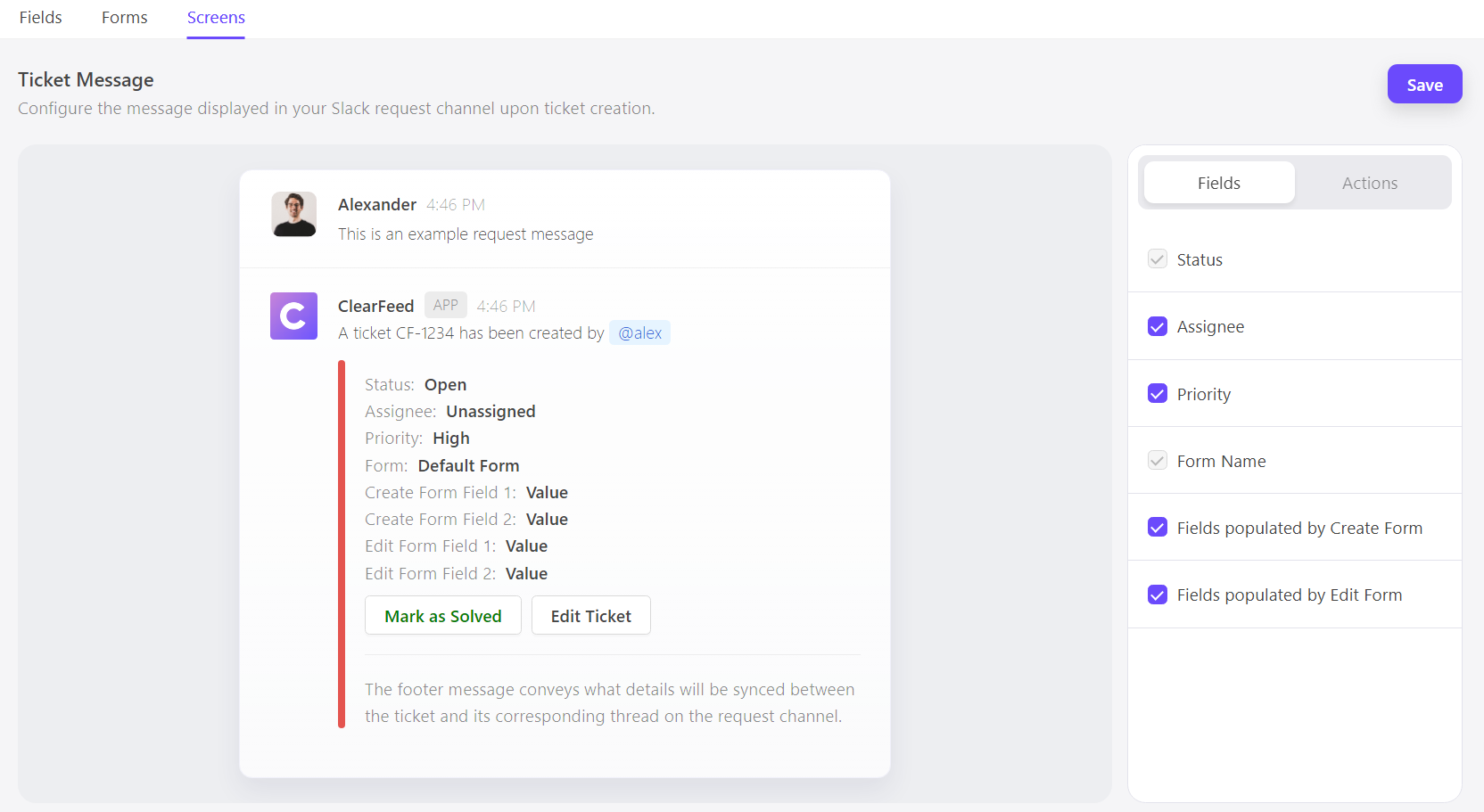 ClearFeed improves ticket management with Forms that simplify creating and editing tickets directly from your request and triage channels.