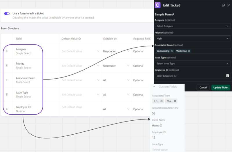 Each ClearFeed Form has two parts: ***creating*** and ***editing a ticket**.*