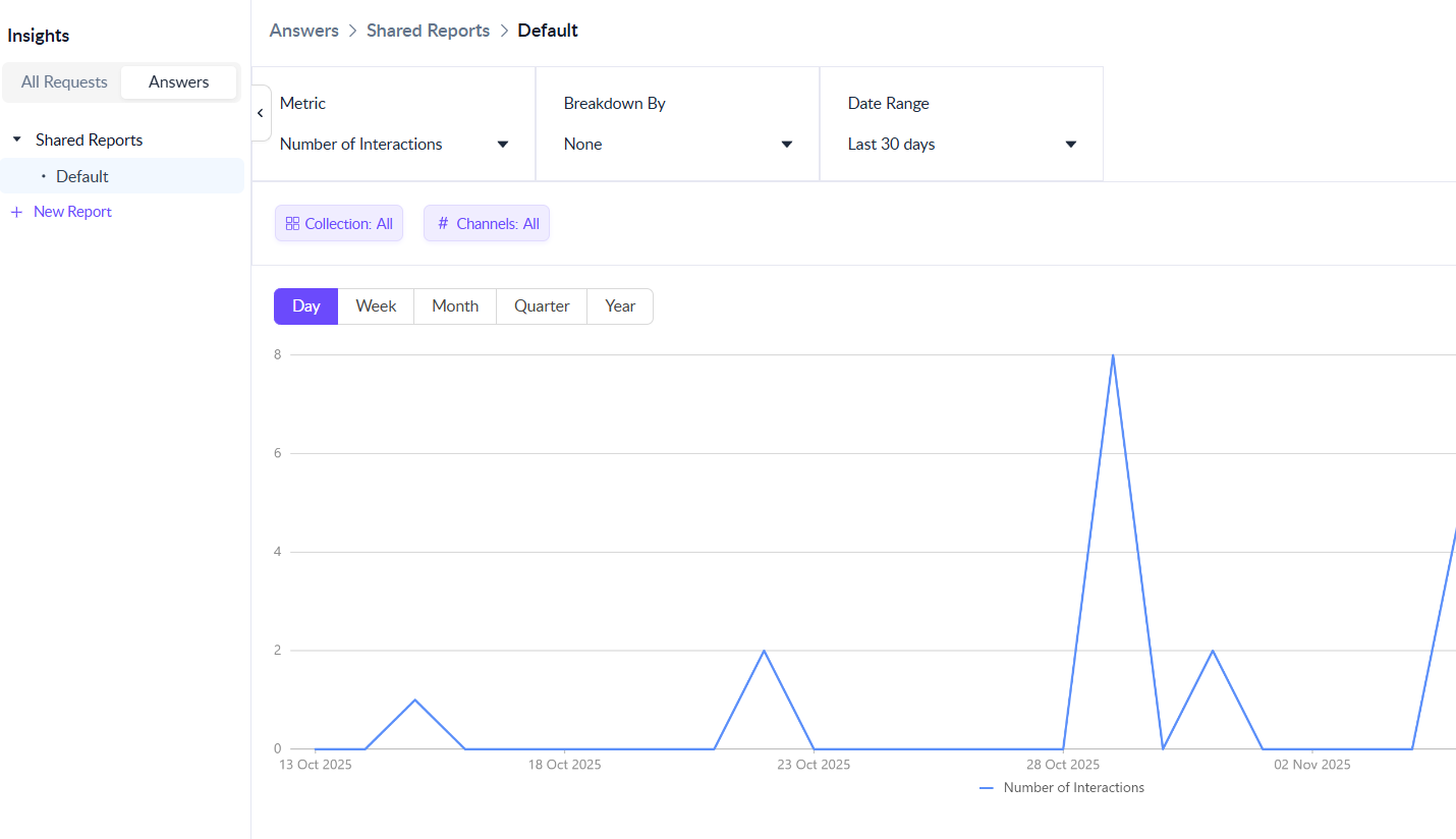 We support metrics across **Requests, Tickets, and Answers**. You can: