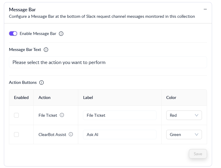 ClearFeed currently supports two actions within the Message Bar:
