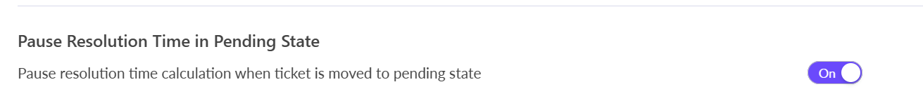 When this setting is enabled, the time a ticket spends in the **Pending** state is **excluded** from the Resolution Time SLA calculation. This ensures a more accurate measure of your team’s active resolution efforts.