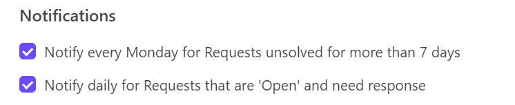 * **Weekly Digest:** Notifies every Monday for unsolved Requests from the last month up to the most recent week