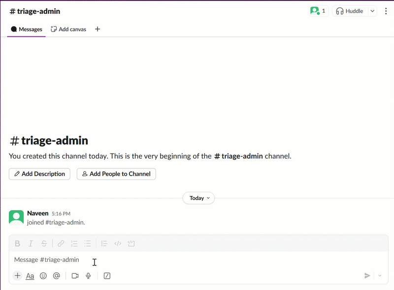 * Go to Slack and open the channel you wish to use as a Triage Channel
