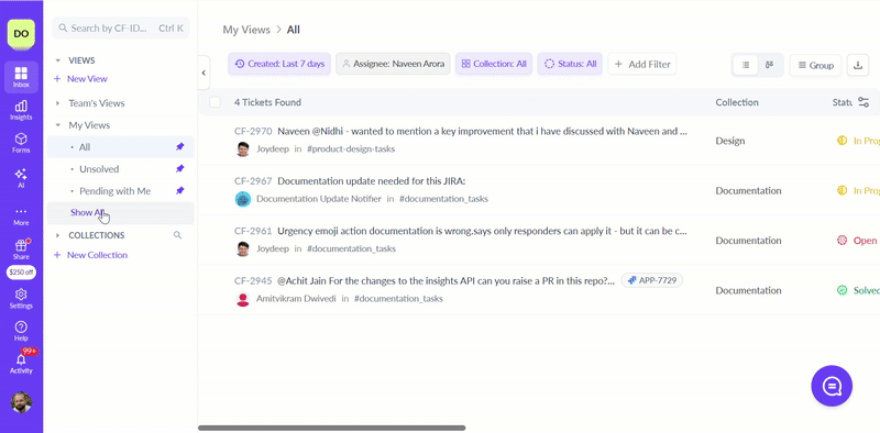 Views is a dedicated section on the ClearFeed Web app that helps you view requests/tickets across all Collections.