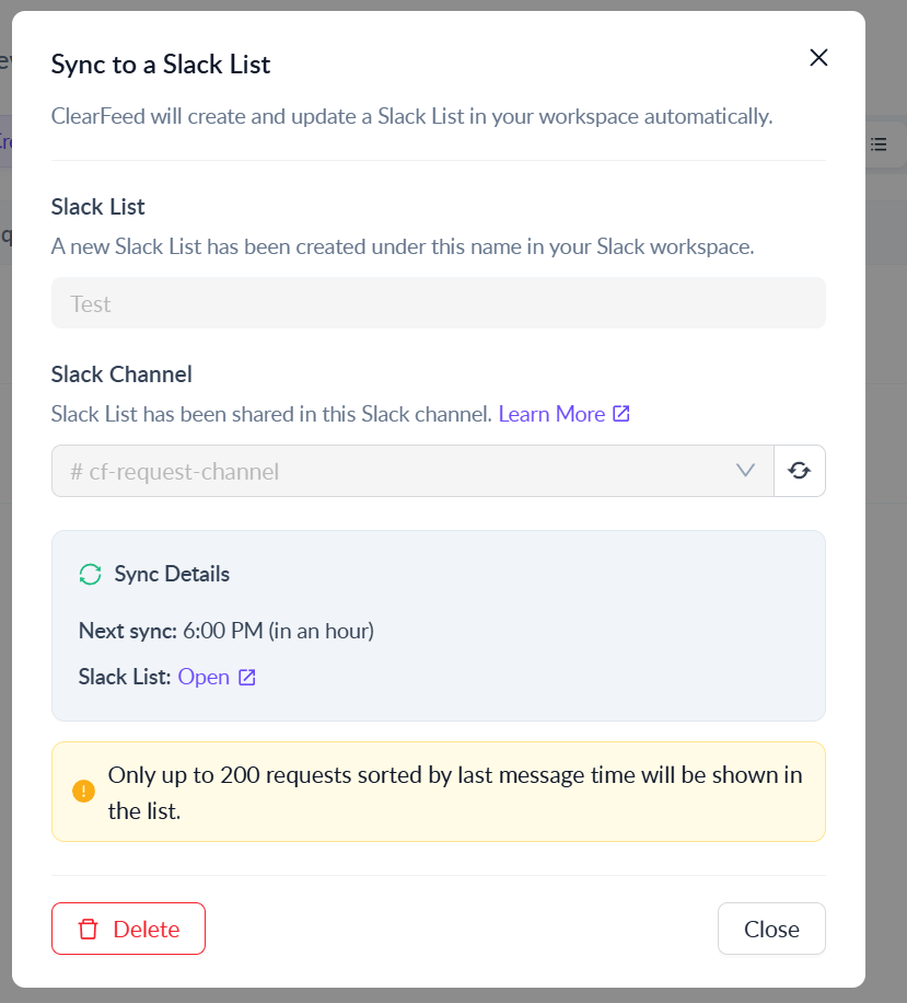 * If you have **multiple ClearFeed accounts**, ensure you are logged into the **same account that originally set up the Sync to Slack List**, otherwise you will see an error