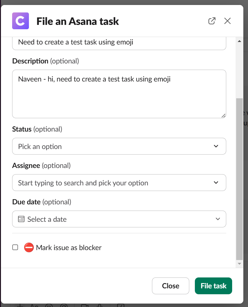 6. **Fill out task details** based on the target system (project, assignee, labels, etc.)