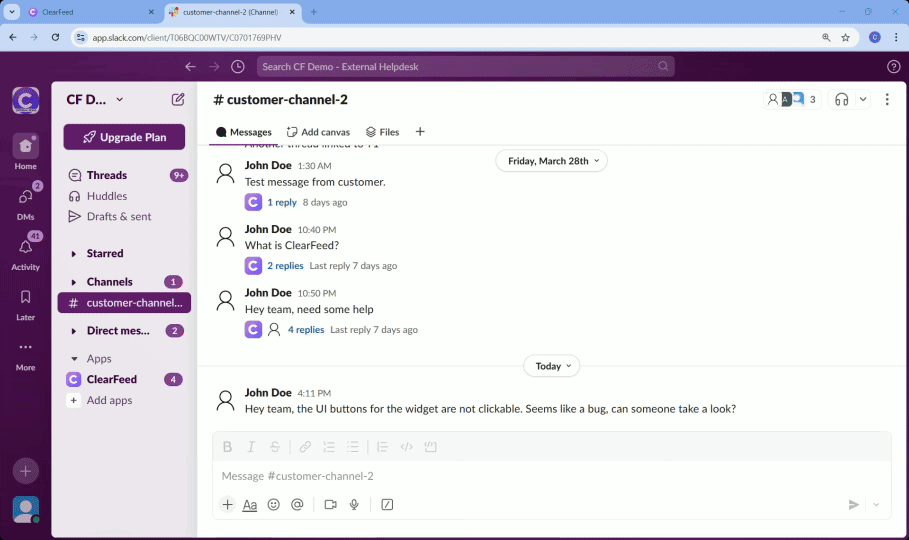 When you enable comment sync, ClearFeed maintains bidirectional synchronization:
