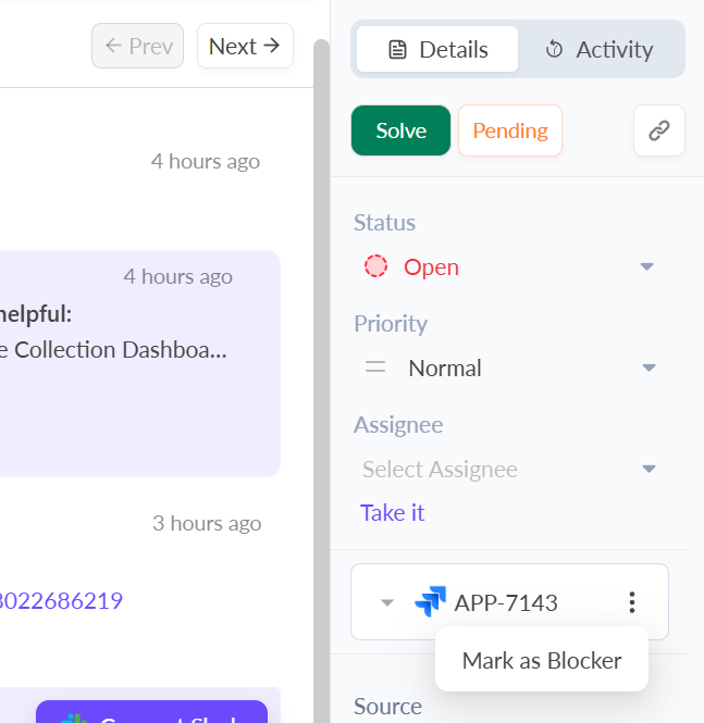 7. **(Optional) Mark as Blocker** if the task must be completed before closing the ticket