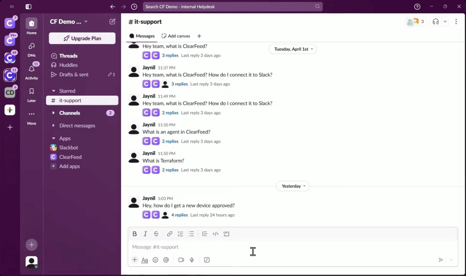 * **ClearFeed Tickets** - Native tickets with IDs like CF-12345