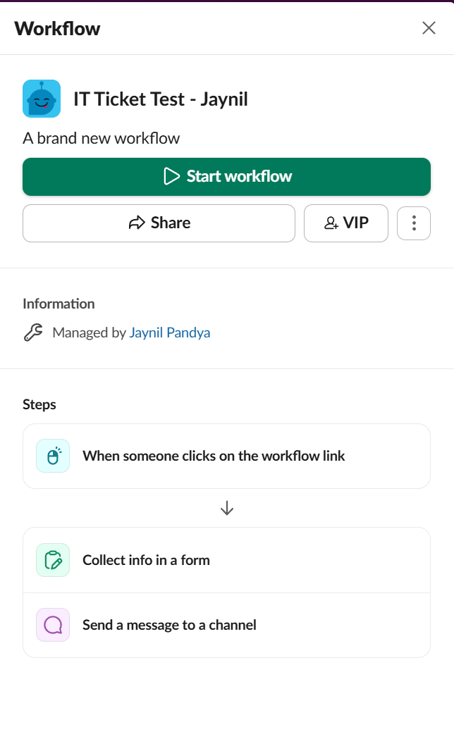 ## Steps to Create a Slack Workflow