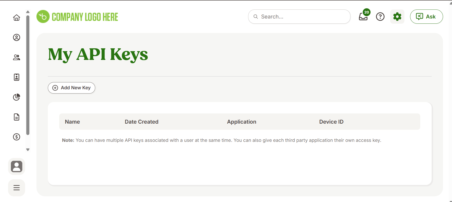 * Click on "My Account" from the lower left-hand corner and click on **API Keys**.