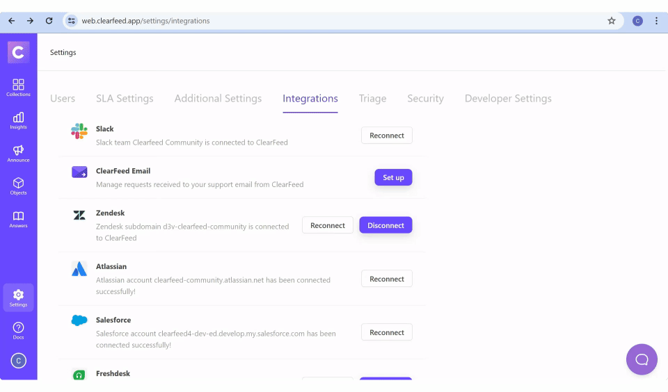* **SLA Tracking**: ClearFeed continues to track response times and SLAs for customer requests