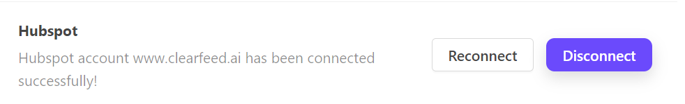 If you want to disconnect the current integration to the HubSpot account from ClearFeed, go to <https://web.clearfeed.app/settings/integrations> -> HubSpot -> click on `Disconnect`.