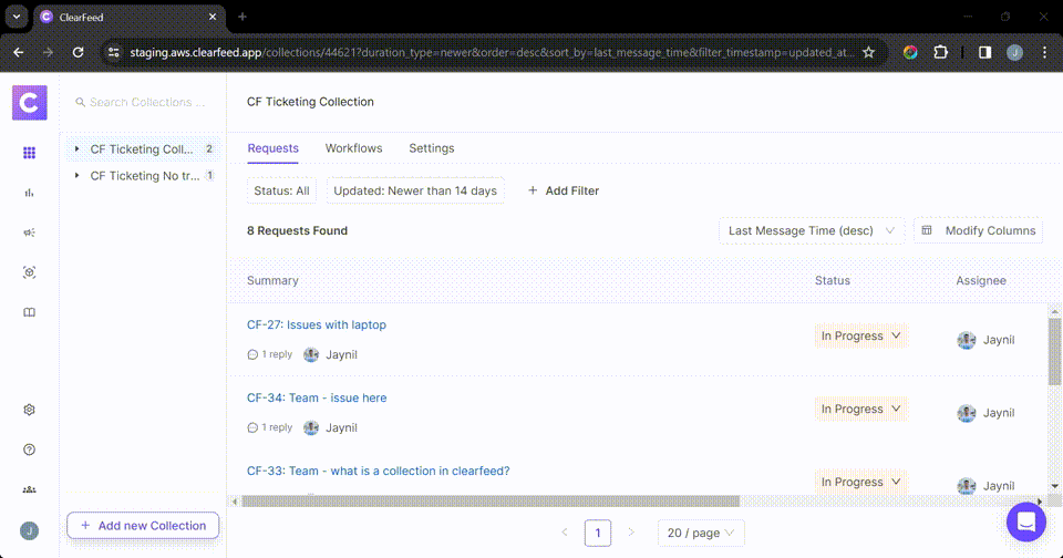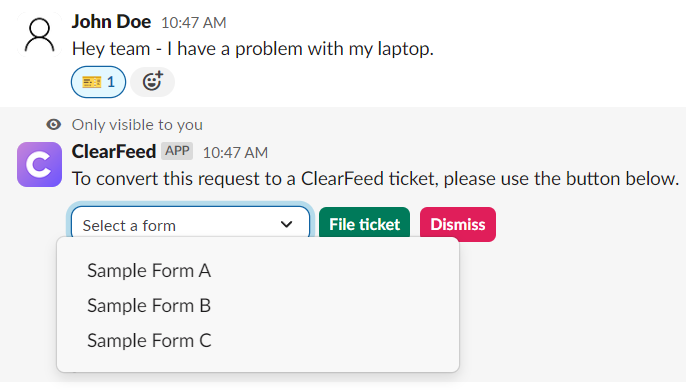 2. **Ticket Status:** Select the initial status of the ticket filed using ClearFeed.