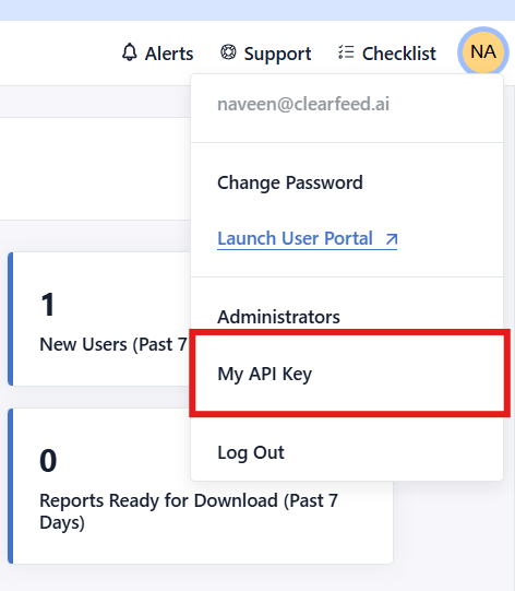 * Go to **API Settings** from your profile menu (top-right).