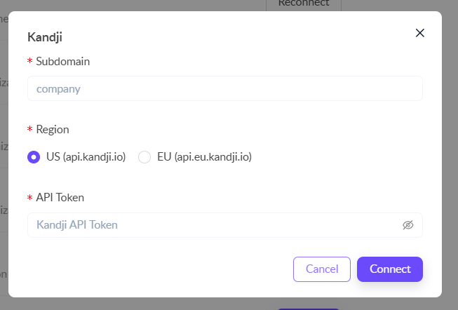 * Kandji will display a modal with the API token. Use the **Copy Token** button to copy the generated API key.