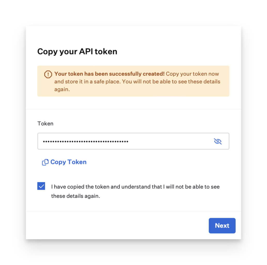 <div data-gb-custom-block data-tag="hint" data-style="warning" class="hint hint-warning"><p><em>Note: This key is only shown once. You won’t be able to retrieve it later.</em> </p></div>