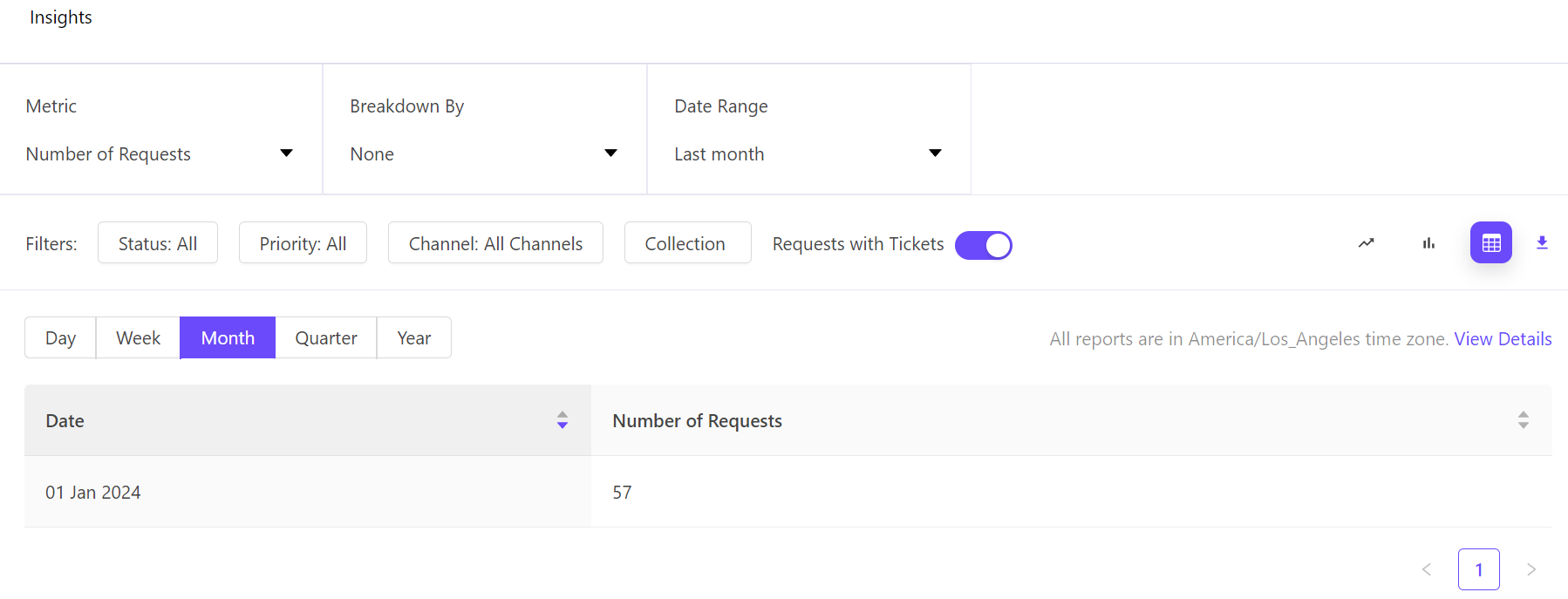 **Answer:** You can keep track of the number of tickets created/linked in your ClearFeed account through our reporting. Jump to the following page - <https://web.clearfeed.app/reports> and apply the filters as shown below: